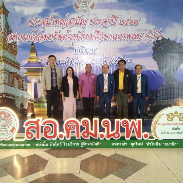 วันที่ 19 ตุลาคม 2568 นายอภิรักษ์ พานนูน สหกรณ์จังหวัดนครพนม พร้อมด้วยนายวิทยา เครือเขื่อนเพชร ผู้อำนวยการกลุ่มส่งเสริมสหกรณ์ 1 เข้าร่วมประชุมใหญ่สามัญประจำปี 2568 ปีบัญชีสิ้นสุดวันที่ 30 กันยายน 2568 ของสหกรณ์ออมทรัพย์ครูมัธยมศึกษานครพนม จำกัด ทั้งนี้ สหกรณ์จังหวัดนครพนม ได้แนะนำให้สหกรณ์ดำเนินงานให้เป็นไปตามข้อบังคับ ระเบียบของสหกรณ์ การส่งเสริมความเข้มแข็งสหกรณ์ ณ หอประชุมวิรบพิตร มหาวิทยาลัยนครพนม อำเภอเมือง จังหวัดนครพนม