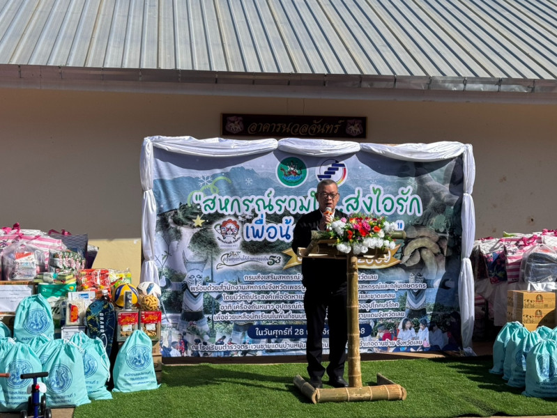 วันที่ 28 พฤศจิกายน 2568 นางสาวภาวดี เจริญไทย ผู้อำนวยการกลุ่มจัดตั้งและส่งเสริมสหกรณ์ พร้อมด้วยนางสาวอินทิรา สุวรรณโคตร นักวิชาการสหกรณ์ปฏิบัติการ เข้าร่วมโครงการประชุมเชิงปฏิบัติการขับเคลื่อนสหกรณ์นักเรียน ในโรงเรียนตามพระราชดำริ สมเด็จพระกนิษฐาธิราชเจ้า กรมสมเด็จพระเทพรัตนราชสุดาฯ สยามบรมราชกุมารี และโครงการ “สหกรณ์รวมใจ...ส่งไอรัก เพื่อน้องน้อย ½” ประจำปีงบประมาณ 2569 ซึ่งมีวัตถุประสงค์เพื่อจัดหาและมอบสิ่งของที่จำเป็นและขาดแคลน เพื่อบรรเทาทุกข์ ช่วยเหลือนักเรียนในพื้นที่ชนบทห่างไกลและในพื้นที่ชายแดนจังหวัดเลย โดยมีนายประวัติ แดงบรรจง รองอธิบดีกรมส่งเสริมสหกรณ์ เป็นประธานในพิธี ณ โรงเรียนตำรวจตระเวนชายแดนบ้านหมันขาว ตำบลกกสะทอน อำเภอด่านซ้าย จังหวัดเลย