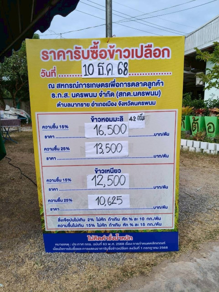 วันที่ 10 ธันวาคม 2568 สำนักงานสหกรณ์จังหวัดนครพนม โดยเจ้าหน้าที่กลุ่มส่งเสริมเเละพัฒนาธุรกิจสหกรณ์ เข้าร่วมปฎิบัติงานในงานตลาดนัดข้าวเปลือกปีการผลิต 2568/69 วันสุดท้ายตลาดรับซื้อข้าวคึกคัก โดยเฉพาะข้าวหอมมะลิราคาสูงขึ้น (แตะ 16.50 บาท/กก. ที่นครพนม) มีผู้ค้าที่รับซื้อถึงลาน ตีราคาหน้าลานจริง พร้อมรับซื้อข้าวเปลือกแห้งความชื้นต่ำ ทำให้การซื้อขายข้าวมีสีสันมากขึ้น โดยมีผู้มาจำหน่ายข้าวโดยประมาณ จำนวน 150 คน ณ สหกรณ์การเกษตรเพื่อการตลาดลูกค้า ธ.ก.ส.นครพนม จำกัด ตำบลนาทราย อำเภอเมืองนครพนม จังหวัดนครพนม